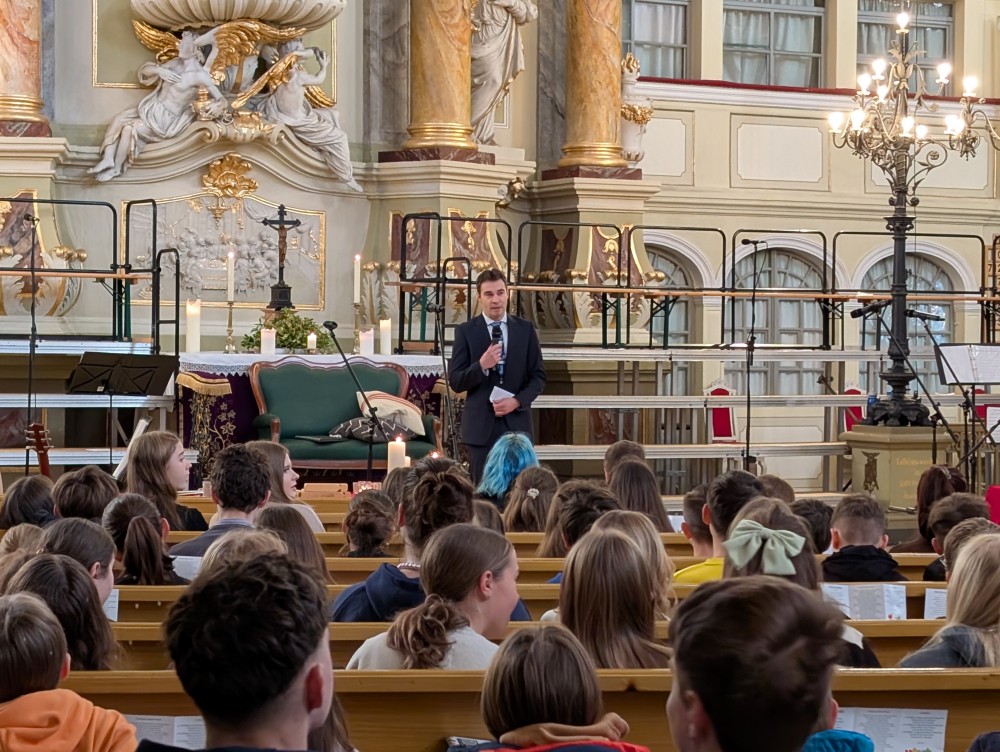 Am Freitagvormittag konnten die Schülerinnen und Schüler der SEK I dem Konzert lauschen, mitsummen und mitsingen.