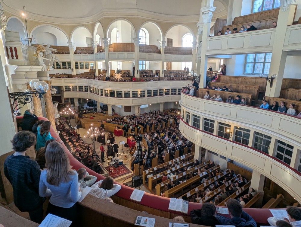 Zum dritten Mal kam in diesem Jahr ein öffentliches Konzert am Vorabend hinzu. Dass es sich inzwischen herumgesprochen hat, dass diese Veranstaltung eine hohe künstlerische Qualität hat und eine wunderbare Einstimmung auf die Feiertage bietet, zeigte sich am schnellen Ausverkauf der Eintrittskarten.
