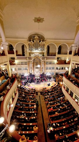 | Pressemeldung Großenhain, 21. Dezember 2023 Gewaltige Stimmen und süße Klänge begeistern das Publikum und unterstützen krebskranke Kinder und Jugendliche Die Weihnachtlichen Konzerte des Werner-von-Siemens-Gymnasiums Großenhain am 20. und 21. Dezember in der Marienkirche Großenhain waren ein ganz besonderes Highlight in vielerlei Hinsicht. Mit gewaltigen Stimmen, süßen Klängen im Chor und am Instrument sowie bekannten Liedern zum Mitsingen bereiteten die Musikerinnen und Musiker der Oberstufe ihrem Publikum ein zauberhaftes Erlebnis. |
